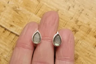 Eleganti orecchini realizzati in Argento 925 con incastonata una pietra dura naturale di Labradorite a goccia taglio sfaccettato.