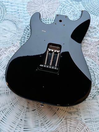 Body per Stratocaster in ontano di una squire Affinity datata. Colore nero, si presenta in buono stato, salvo qualche piccola imperfezione come visibile in foto. Misure standard fender. Compreso di ponte e reggi tracolla.