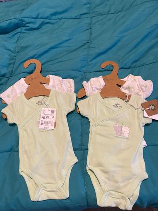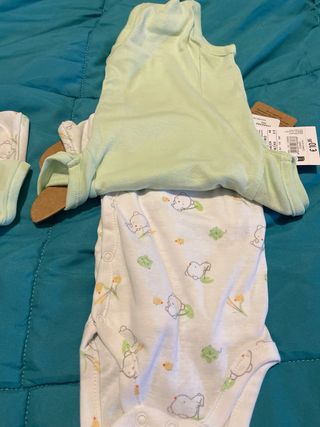 Set di quattro body neonato in cotone biologico, con chiusura a kimono. - Fantasia con orsetti e scritta Hello Puppies. - Colore verde menta. - Taglia 0 mesi - cm 46 - kg 2/3