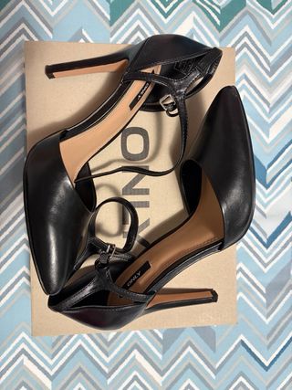 Eleganti scarpe décolleté con tacco, perfette per ogni occasione. - Modello con cinturino alla caviglia. - Punta affusolata. - Dettaglio logo sulla soletta.
