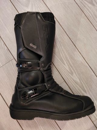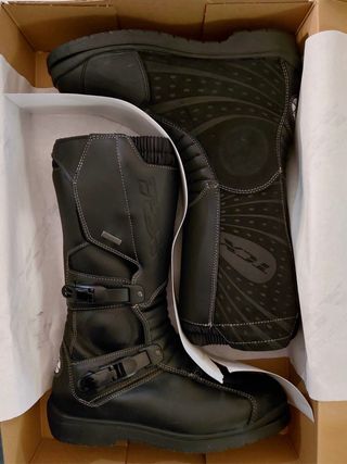 Indossati solo per prova, mai utilizzati, senza segni, nella loro scatola originale, stivali da moto touring/adventure di fascia alta, per lunghi viaggi, uso quotidiano e per tutte le stagioni, con particolare attenzione a comfort, protezione e impermeabilità. Robusti ma non rigidi, sono adatti anche a camminare. Tomaia: pelle pieno fiore + inserti in microfibra; Membrana: GORE-TEX® Performance Comfort (impermeabile, antivento, traspirante); Rinforzi su tibia, malleoli, tallone e punta, inserto rigido parastinchi. Certificazione: CE EN 13634 Gli Infinity GTX sono uno dei migliori stivali impermeabili, come Dainese, Sidi, Revit, etc