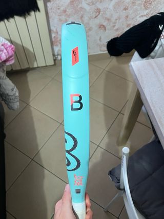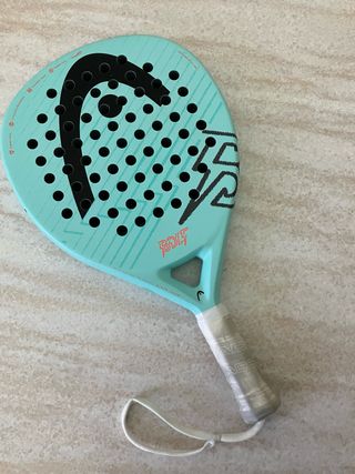 Racchetta da padel Head Bolt di colore azzurro. Presenta il logo Head nero e dettagli grafici. - Design con fulmine e scritte. - Laccetto di sicurezza bianco. - Impugnatura avvolta.