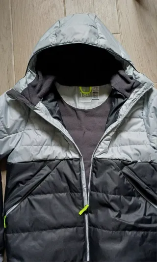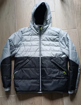 Piumino sci bambino 14 anni marca Wedze Decathlon usato 5/6 volte non di più è pari al nuovo. Imbottito, compreso il cappuccio, molto caldo. Tasche con zip e tasca nella manica sinistra sempre con zip. Colore nero e grigio, buona vestibilità.
