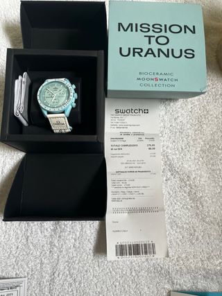 Orologio Swatch x Omega Mission to Uranus. - Collezione Bioceramic Moonswatch. - Scatola originale inclusa. - Documentazione originale presente.