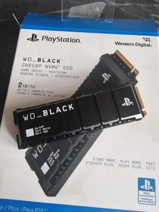 SSD WD_BLACK SN850P da 2TB, progettato specificamente per PS5. - Capacità: 2TB - Tipo: NVMe SSD - Velocità di lettura fino a 7.300 MB/s - Include dissipatore di calore (Heatsink) - Prodotto con licenza ufficiale PlayStation
