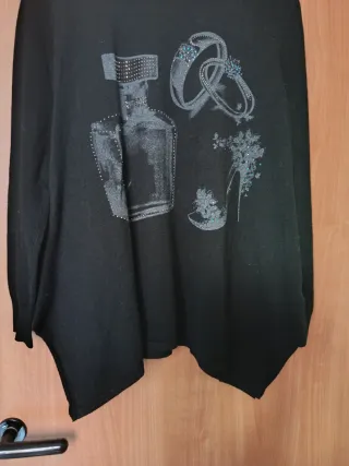 Maglia da donna a maniche lunghe con un design unico. - Stampa decorativa con profumo, anelli e scarpa. -Spedizione con Poste Italiane e InPost