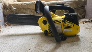 Motosega per potatura di colore giallo. - Impugnatura nera - Funziona bene, è solo da carburare essendo il carburatore nuovo