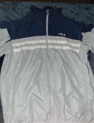 Giacca a vento Fila con un design a blocchi di colore. con piccola imperfezione come in foto. - Colletto alto con zip. - Inserti a contrasto sulle maniche e sul petto. - Logo Fila sul petto.