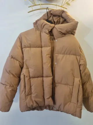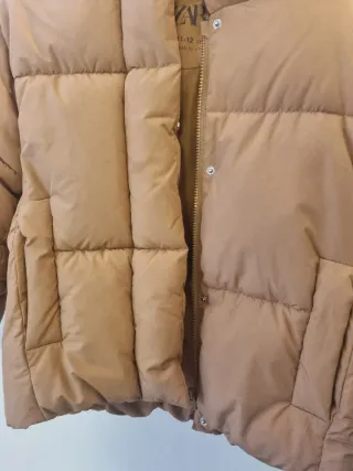 Giubbino imbottito Zara per bambini. - Colore marrone chiaro. - Cappuccio integrato. - Chiusura con zip e bottoni. - Tasche laterali. - Taglia 11-12 anni.