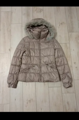 Elegante piumino da donna Sartoria Leoni, perfetto per le giornate più fredde. - Cappuccio con pelliccia sintetica. - Chiusura frontale con zip. - Tasche laterali con zip. - Design trapuntato.