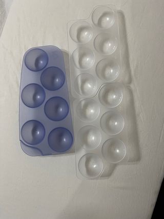 Portauova in plastica blu e trasparente