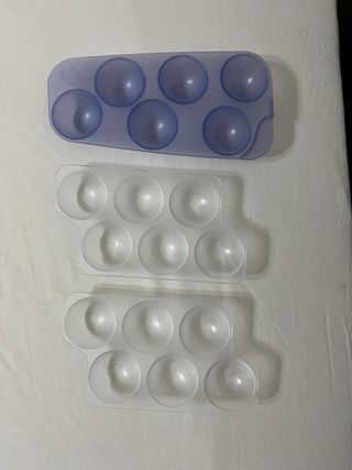 Set di portauova in plastica, uno blu e due trasparenti. Perfetti per conservare le uova. - Design a 6 posti per ogni portauovo. - Materiale resistente e facile da pulire.