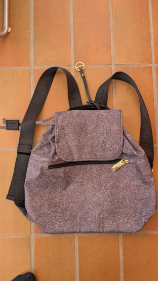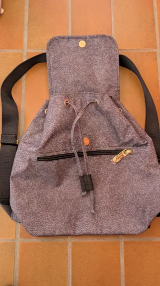 Bellissimo zaino originale Borbonese, modello medio. Il materiale principale è tessuto con la stampa iconica "Occhio di Pernice" grigio/blu. Gli spallacci sono regolabili e neri, logati Borbonese. Ha una chiusura superiore a coulisse e una patta con bottone magnetico. Sulla parte frontale è presente una comoda tasca esterna con cerniera. L'interno è foderato con tessuto logato e ha una tasca interna aperta. Lo zaino è leggero, pratico e versatile, perfetto per l'uso quotidiano.
