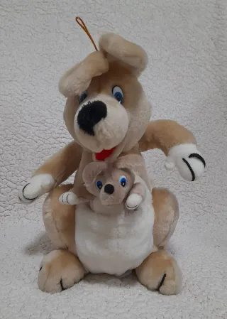 Dolce peluche della Kimmies raffigurante una mamma canguro con il suo cucciolo. Caratteristiche: Il piccolo è rimovibile dal marsupio. Condizioni: Molto buone, etichetta Kimmies presente. Dimensioni: Ideale come regalo o per arredamento cameretta.
