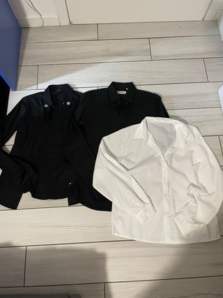 Vendo set di 3 camicie casual da donna, 2 nere e una bianca, tutte taglia S da donna. Indossate in poche occasioni, non presentano difetti e sono in perfette condizioni #camicia #donna