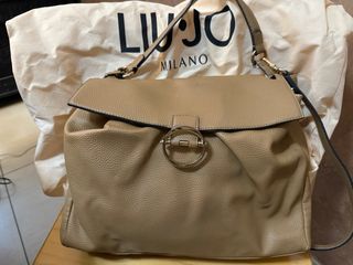 Borsa Liu Jo in pelle, colore beige. - Materiale: pelle martellata. - Dettaglio con fibbia ad anello dorato. - Chiusura con patta. - Tracolla regolabile. Borsa Liu Jo divisa all'interno con due scompartimenti due tasche chiuse con lampo un manico corto e uno lungo per tracolla. Utilizzata in alcuni punti interni segni di usura Non si accettano resi Formula visto piaciuta a disposizione per ulteriori informazioni e foto