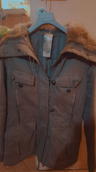 Giacca invernale con colletto removibile in pelliccia. - Chiusura con bottoni e zip. - Tasche frontali con patta. - Coulisse in vita per regolare la vestibilità. - Fodera interna imbottita. Manca qualche bottone