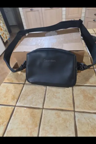 Borsello Calvin Klein in pelle nera. - Logo Calvin Klein stampato sul davanti. - Tracolla regolabile. - Chiusura con zip.