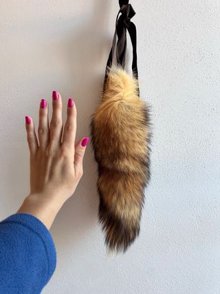 Accessorio portachiavi in pelliccia e nastrino di velluto marrone 43 x 12 cm Folta, ottime condizioni
