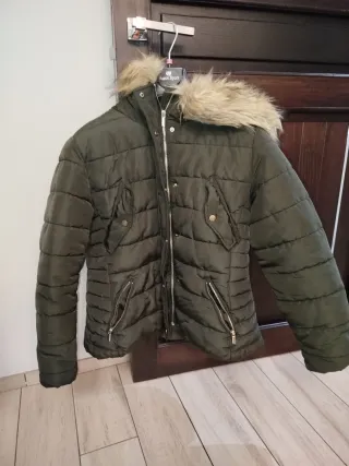 Caldo piumino con cappuccio bordato in pelliccia sintetica. - Chiusura frontale con zip. - Tasche laterali con zip. - Dettagli con bottoni a pressione.