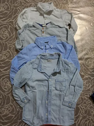 Set di quattro camicie per neonato. - Camicia bianca - Camicia a righe blu - Camicia azzurra - Camicia in denim azzurro