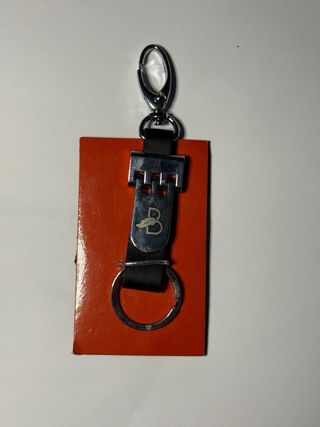 Portachiavi da uomo con logo. - Dettaglio con logo B e piuma. - Moschettone in metallo argentato. - Anello portachiavi. - Taggatura in pelle nera.