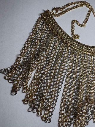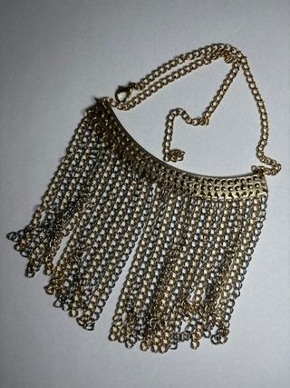 Collana da donna, un gioiello elegante e raffinato. - Design a cascata con catenelle. - Finitura bicolore oro e argento. - Realizzata in Italia.