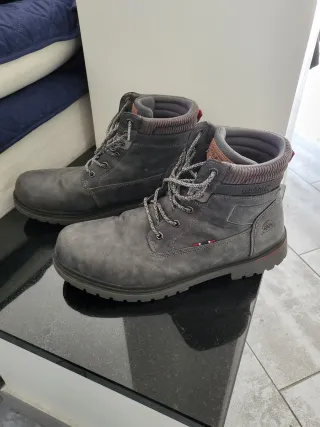 Scarponcini invernali da uomo in color grigio. - Tomaia in simil pelle - Allacciatura frontale con lacci. - Patch logo sul lato della linguetta.