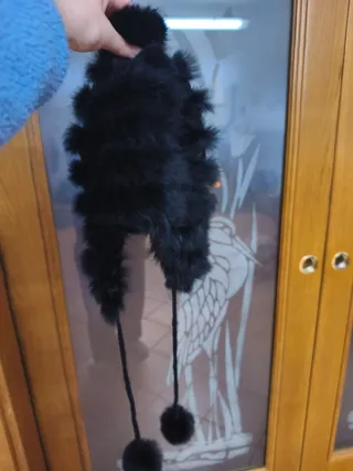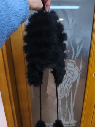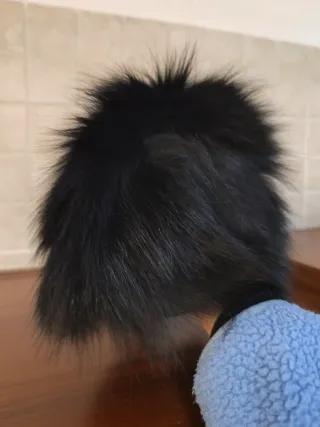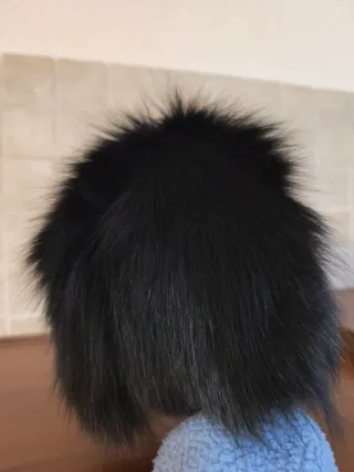 Cappello in pelliccia di volpe blu, colore nero. - Morbido e voluminoso. - Dettagli in pelliccia folta.