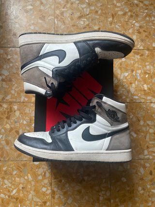 Scarpe Jordan 1 High. - Tomaia in pelle con inserti in camoscio. - Dettagli color mocha. - Logo Swoosh nero. - Suola in gomma.