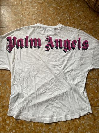 Maglia Palm Angels con stampa logo sul retro. - Vestibilità oversize. - Stampa logo effetto gotico.