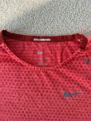 Maglietta sportiva Nike Running. - Tessuto tecnico traspirante. - Design a fantasia. - Logo Nike applicato.
