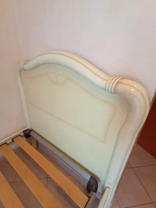 Struttura letto con rete a doghe inclusa. - Testiera con finitura decorativa. - Rete in legno. Vendo urgentemente per liberare spazio. E in buono stato tenuto bene ritiro a mano no perditempo prezzo trattabile entro 1 settimana se no lo butto via scrivetemi sulla nuova email Stekky15settembre@gmail.com