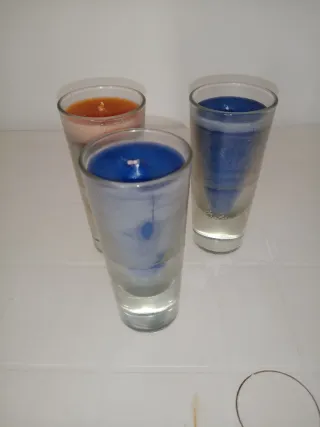Vendo set di 3 candele in bicchieri di vetro. Due blu e una arancione, come in foto. Bicchiere decorato. Misure in foto. #candela #candeledecorative #candeleinbicchieredivetro #candeleinvetro #setcandele #candeleprofumate