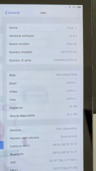 iPad Air di prima generazione con connettività Wi-Fi e cellulare. - Capacità di archiviazione da 32GB. - Colore argento.