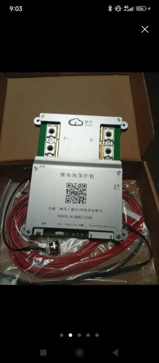 Scheda di protezione per batterie al litio e lfp, modello JK BMS B2A8S20P. 12/24v potenza massima 350A Bluetooth doppio sensore temperatura Completo di tutti i cavi - Design compatto e robusto. - Etichetta con QR code per app e manuale. - Connessioni P- e B- chiaramente indicate. - Include cavi di collegamento.