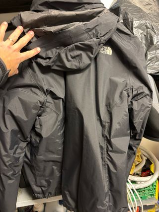 Giacca in buono stato, forse non originale, difetti due strip sono quasi rotti, si sono scuciti, la felpa dentro é cucita e non a ZIP per levarla. Oltre questo il giacchetto non presenta segni di usura, macchie, buchi, é in perfette condizioni. Giacca The North Face in colore nero, modello con tecnologia HyVent. - Cappuccio regolabile. - Zip frontale. - Tasche laterali. - Polsini regolabili.