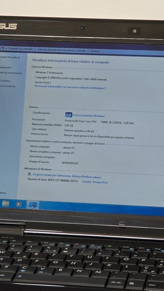 Asus K50IJ 15.6" T4400 Dual Core 2GB 250GB Windows 7 Estetica Perfetta Batteria 🔷 CONDIZIONE: Usato 🔷 GRADO: Funzionante, condizioni estetiche ottime (minimi graffi) 🔷 MARCA: ASUS 🔷 MODELLO: K50IJ 🔷 PROCESSORE: Intel Pentium T4400 Dual Core (2.20 GHz) 🔷 DISPLAY: 15,6" 🔷 RAM: 2GB 🔷 PRESTAZIONI: Ideale per uso base o installazione OS free 🔷 MEMORIA: HDD 250GB 🔷 SCHEDA VIDEO: Intel Graphics integrata 🔷 BATTERIA: Esaurita; funziona solo collegato all’alimentatore (incluso) 🔷 MULTIMEDIA: Webcam, Wi-Fi, porte USB 🔷 SISTEMA OPERATIVO: Windows 7 (da attivare) 🔷 COLORE: Nero 🔷 SERIALE: A1N0AS507329042 🔷 CODICE INTERNO: PC071