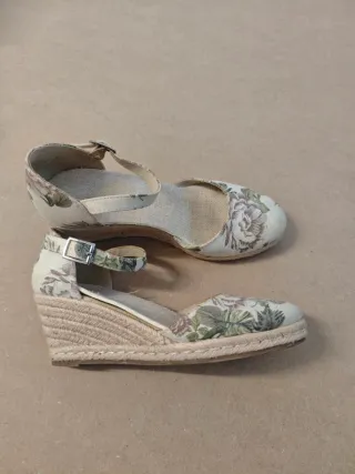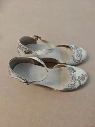 Eleganti scarpe da donna con un delicato motivo floreale. - Design a punta chiusa. - Cinturino alla caviglia con fibbia per una calzata sicura. - Finitura in tessuto stampato.