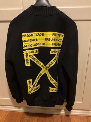 Vendo iconico giubbotto modello bomber Off-White, colore nero con dettagli Firetape bianco sporco, uno dei design più ricercati del brand. Capo come nuovo, indossato pochissime volte e tenuto con la massima cura. Dettagli tecnici: Esterno: Lana Vergine (58%), Poliammide (18%), Poliestere (14%) Costine: Viscosa (50%), Cotone (50%) Interno: Viscosa (100%) Taglia: M Prezzo: 500€ ma trattabile Un capo esclusivo, perfetto per chi cerca stile e qualità firmata Off-White. Disponibile per foto aggiuntive o ulteriori informazioni su richiesta.