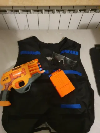 Set di accessori Nerf Doomlands. - Pistola Nerf Doomlands Persuader. - Caricatore. - Occhiali protettivi. - Gilet tattico nero con dettagli blu.