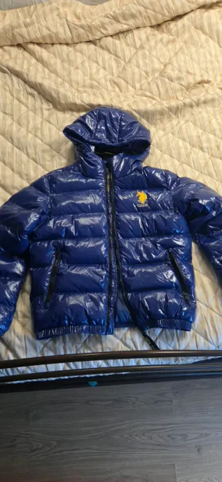 Giubbotto lucido US POLO con cappuccio. Presenta un logo giallo sul petto.molto caldo imbottitura interna - Chiusura con zip frontale. - Tasche laterali con zip. - Polsini e fondo elasticizzati.