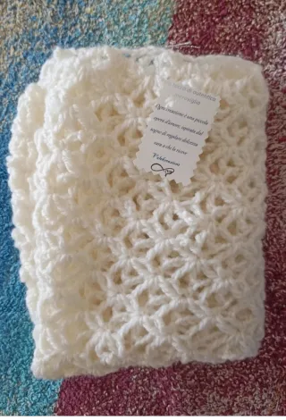 Mantella realizzata a mano con un motivo traforato. - Design unico e artigianale. - Morbida e confortevole.