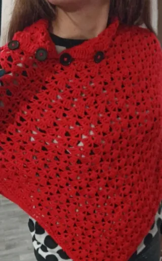 Scialle fatto a mano rosso con bottoni