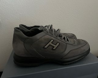 Scarpe Hogan Interactive H Flock da uomo. - Modello Hogan Interactive. - Logo H Flock. - Colore grigio. La soletta interna non è presente, perché sostituita da plantare Scatola originale