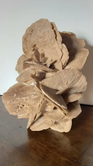 Questa Rosa del Deserto gigante è una vera scultura naturale. Le sue formazioni cristalline a petalo sono incredibilmente definite e creano un gioco di volumi e ombre che cambia a seconda dell'esposizione alla luce. Caratteristiche principali: Dimensioni imponenti: 22 x 22 cm con un'altezza di ben 31 cm. Peso consistente: ben 6600 grammi (6,6 kg), sinonimo di solidità e qualità del minerale. Stato di conservazione: ottimo, con petali ben definiti e struttura integra. Estetica: color sabbia con riflessi cristallini tipici della selenite P.S. NON SPEDISCO CON BRT