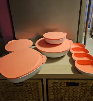 Set di ciotole Tupperware Allegra, ideali per conservare e servire. - Ciotole con coperchi ermetici. - Design moderno e funzionale. -Capacita' 740 - 1,5 e 3,5 l - la ciotola quadrata 2,5 l - antipastiera