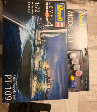 Modellino del Patrol Torpedo Boat PT-109 della Revell, scala 1:72. - 146 pezzi. - Lunghezza 34,1 cm. - Livello di difficoltà 4. - Include colori Aqua Color e pennello.