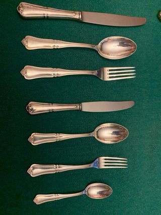 Raro servizio antico da 6 in argento 800, firmato F. Broggi. Anni 50 Design elegante e raffinato. Punzonato ogni pezzo come fa foto VALUTO OFFERTE 45 pezzi - vedi foto Peso totale kg 3.375 (di cui coltelli grandi 684 gr. Piccoli 455 ) compreso il grande e pesante mestolo + cucchiaio grande e forchetta grande x legumi e insalate Ogni pax è composto da 7 posate Più il grande e pesante mestolo E' come nuovo! senza alcuna imperfezione! Ovviamente la vendita non è a peso perche' si deve tener presente anche la manifattura degli argentieri F lliBroggi