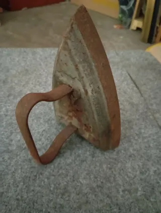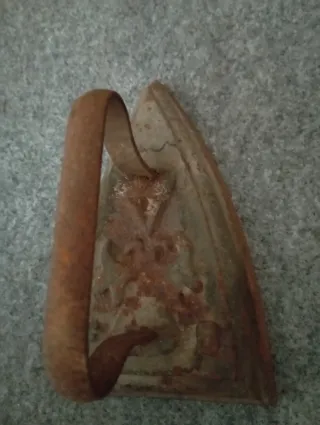 Ferro da stiro antico, un pezzo di storia per la tua casa.presenta i segni del tempo e la classica patina di ruggine - Materiale in metallo arrugginito. - Manico in metallo sagomato.